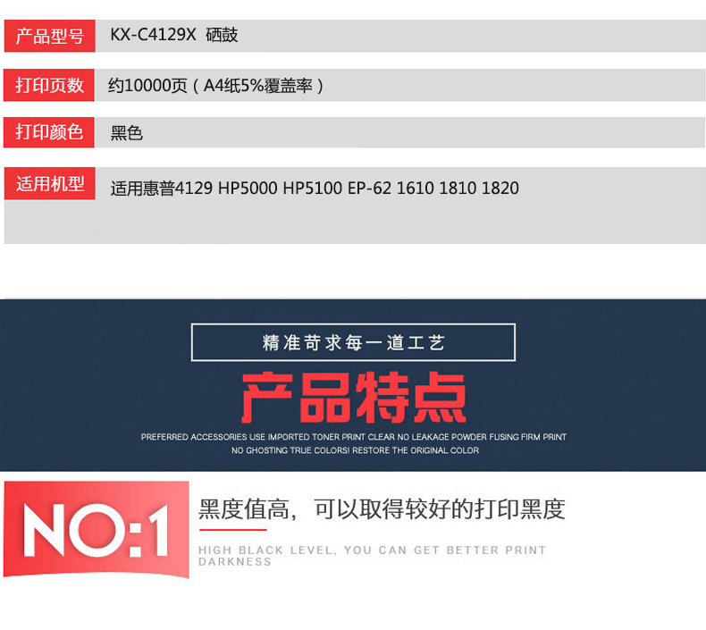凱欣標準版 KX-C4129X粉盒 適用惠普4129 HP5000 HP5100硒鼓佳能EP-62 1610 1810 1820 全國統(tǒng)一價:236元