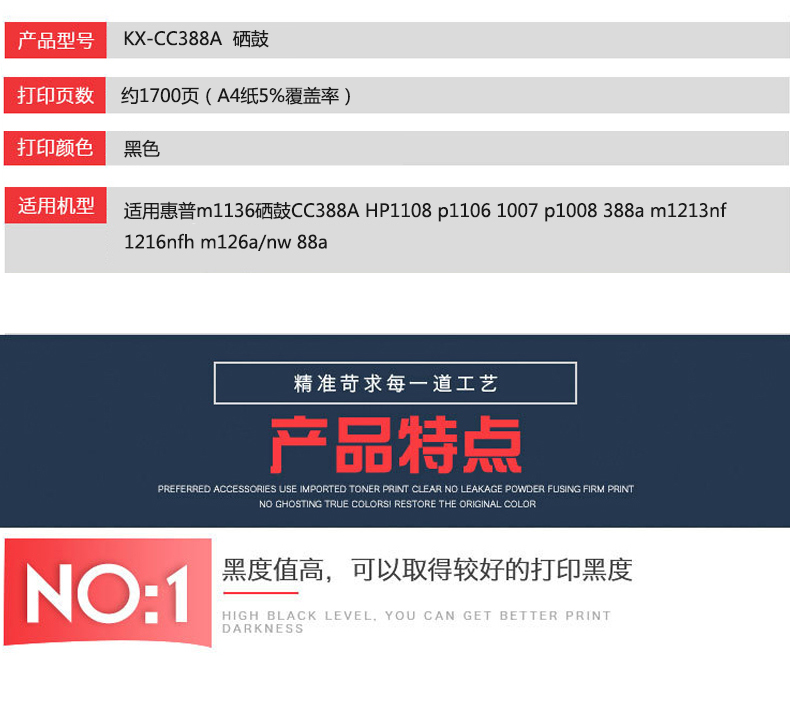 凱欣標(biāo)準(zhǔn)版 KX-CC388A硒鼓 適用惠普m1136硒鼓CC388A HP1108 p1106 1007 p1008 388a m1213nf 1216nfh墨盒m126a/nw打印機(jī) 全國統(tǒng)一價(jià):126元