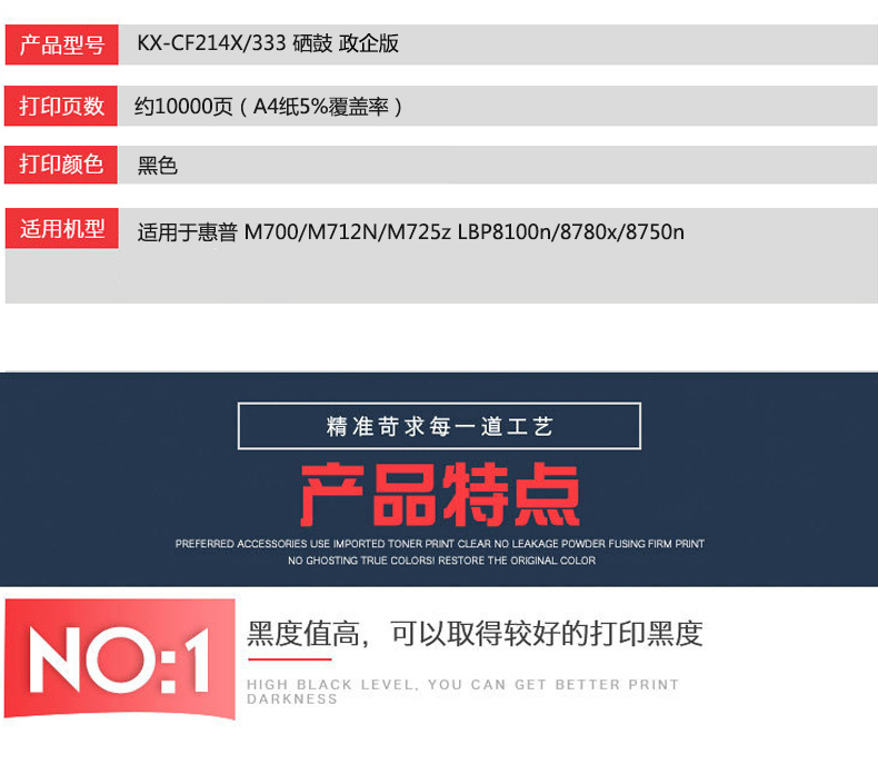 凱欣政企版 KX-CF214X333 硒鼓 適用于惠普 M700M712NM725z 佳能 LBP8100n8780x8750n 全國(guó)統(tǒng)一價(jià):236元