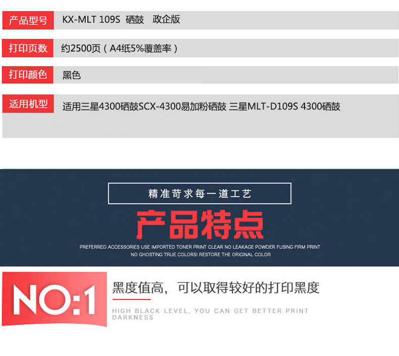 凱欣KX-MLT 109S 適用三星4300硒鼓SCX-4300易加粉硒鼓 三星MLT-D109S 4300硒鼓 全國(guó)統(tǒng)一價(jià):189元