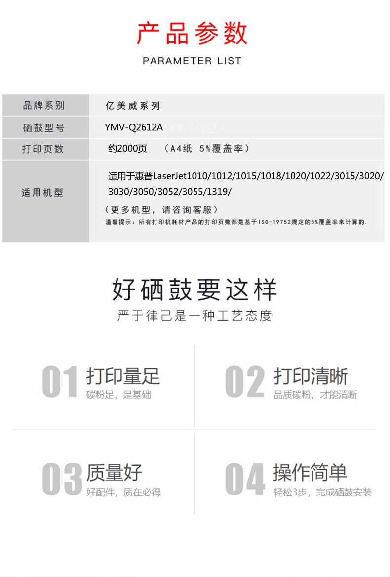 億美威 YMV-Q2612A 惠普 LaserJet1010/1012/1015/1018/1020 全國統(tǒng)一價:178元