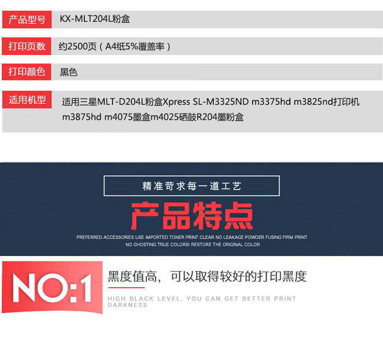 凱欣標準版MLT204L粉盒適用三星MLT-D204L Xpress SL-M3325ND m3375hd m3825nd打印機m3875hd 全國統(tǒng)一價:186元