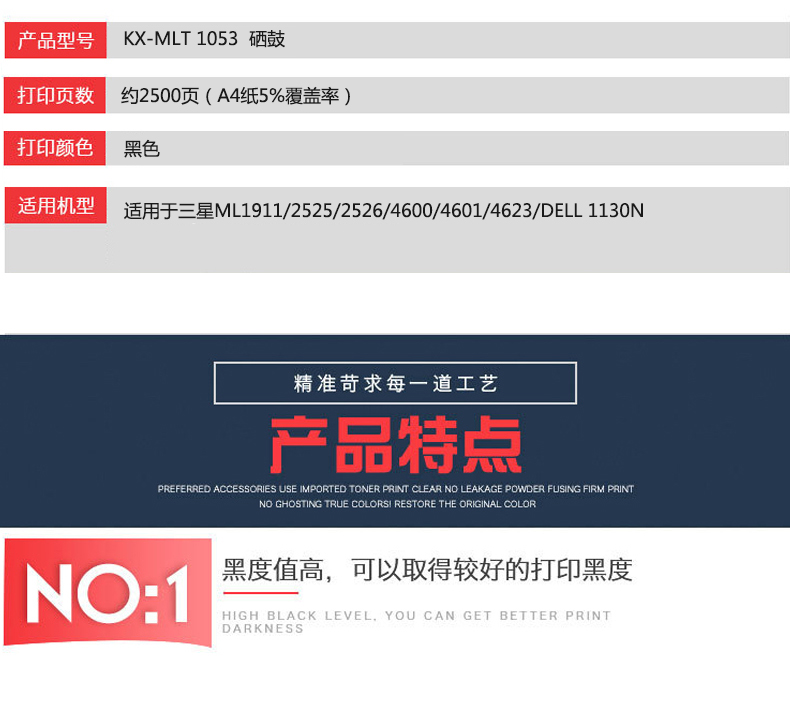 凱欣標(biāo)準(zhǔn)版 KX-MLT1053粉盒 適用于三星 ML1911/2525/2526/4600/4601/4623/DELL 1130N 全國(guó)統(tǒng)一價(jià):160元