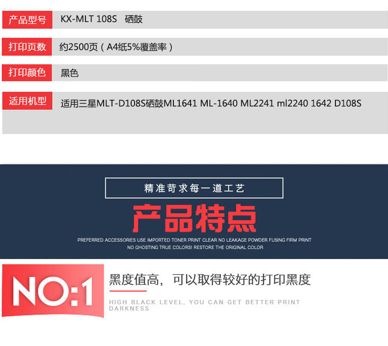 凱欣標準版 KX-MLT108S粉盒 適用三星MLT-D108S硒鼓ML1641 ML-1640 ML2241激光打印機墨盒ml2240 全國統(tǒng)一價:156元