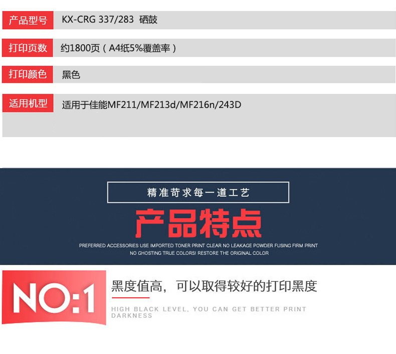 凱欣標(biāo)準(zhǔn)版 KX-CRG337/283粉盒 適用于佳能MF211/MF213d/MF216n/243D 全國統(tǒng)一價(jià):130元